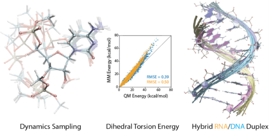 We introduced a unified, extensible framework for learning torsional energy landscapes in nucleic acids, pushing beyond traditional AMBER/CHARMM parameterization. The resulting force field delivers near-state-of-the-art accuracy while generalizing to chemically modified RNA/DNA systems.